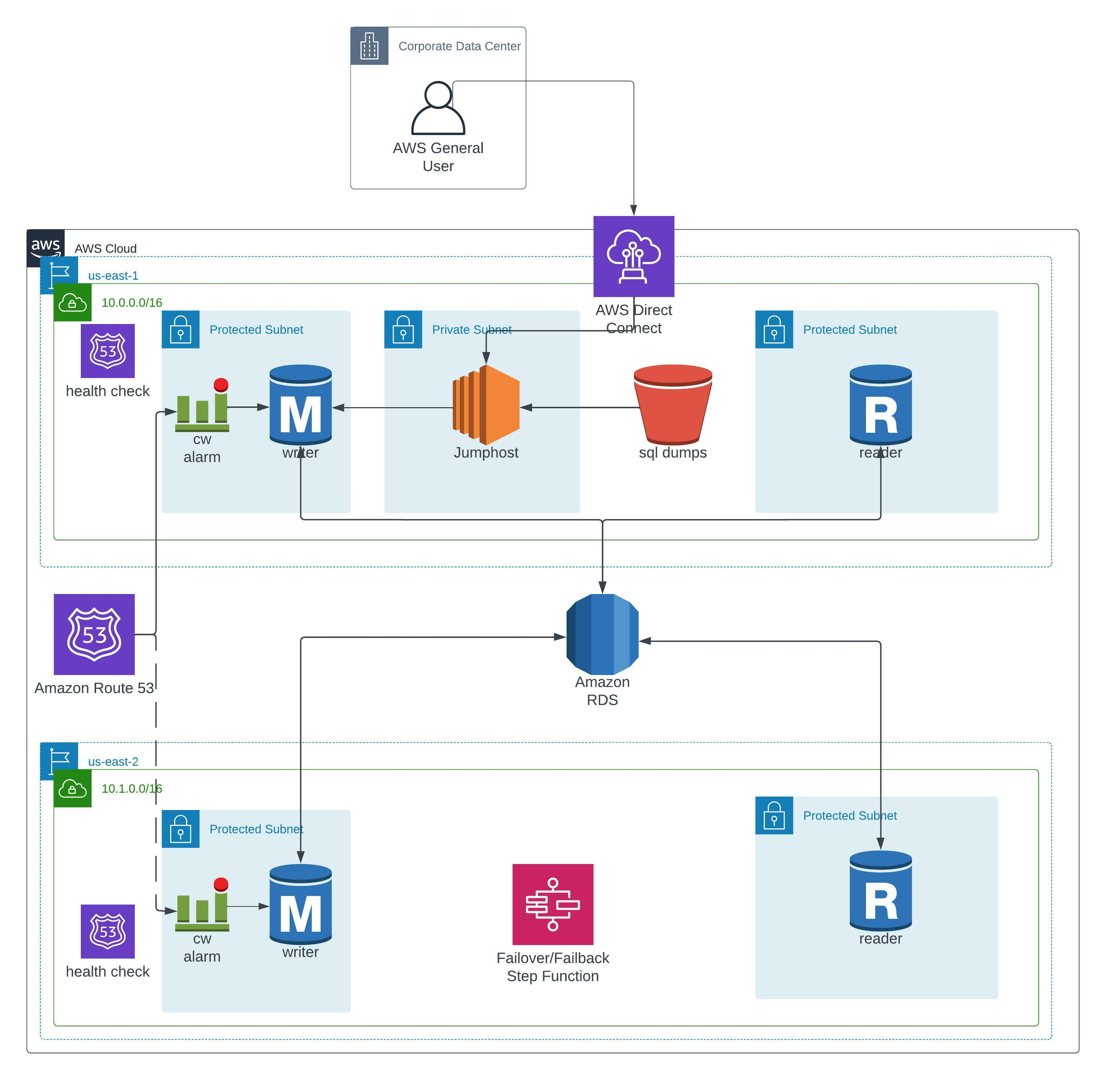 Step functions is a fairly complex product that has tons of features. Luckily, it is supported by Terraform and we were able to use this resource combined with the lambda module to fully automate the deployment of the step function. Using step functions and Route53 together, we were able to achieve fully automated managed and unplanned failovers without any changes to application code.